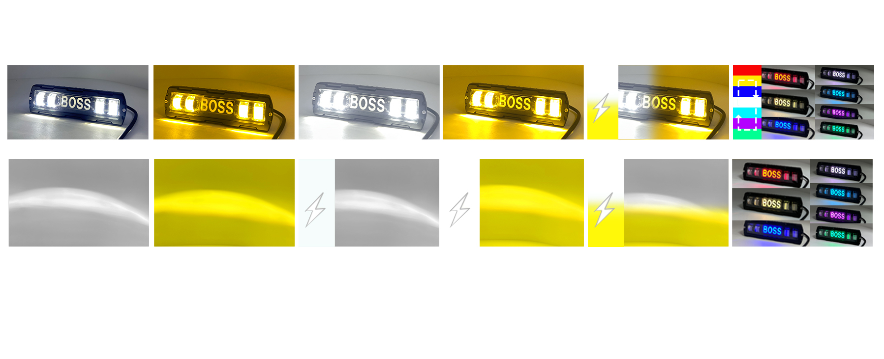 模式:白光常亮/黄光常亮/白光爆闪/黄光爆闪/白+黄爆闪/七彩常亮+流水
