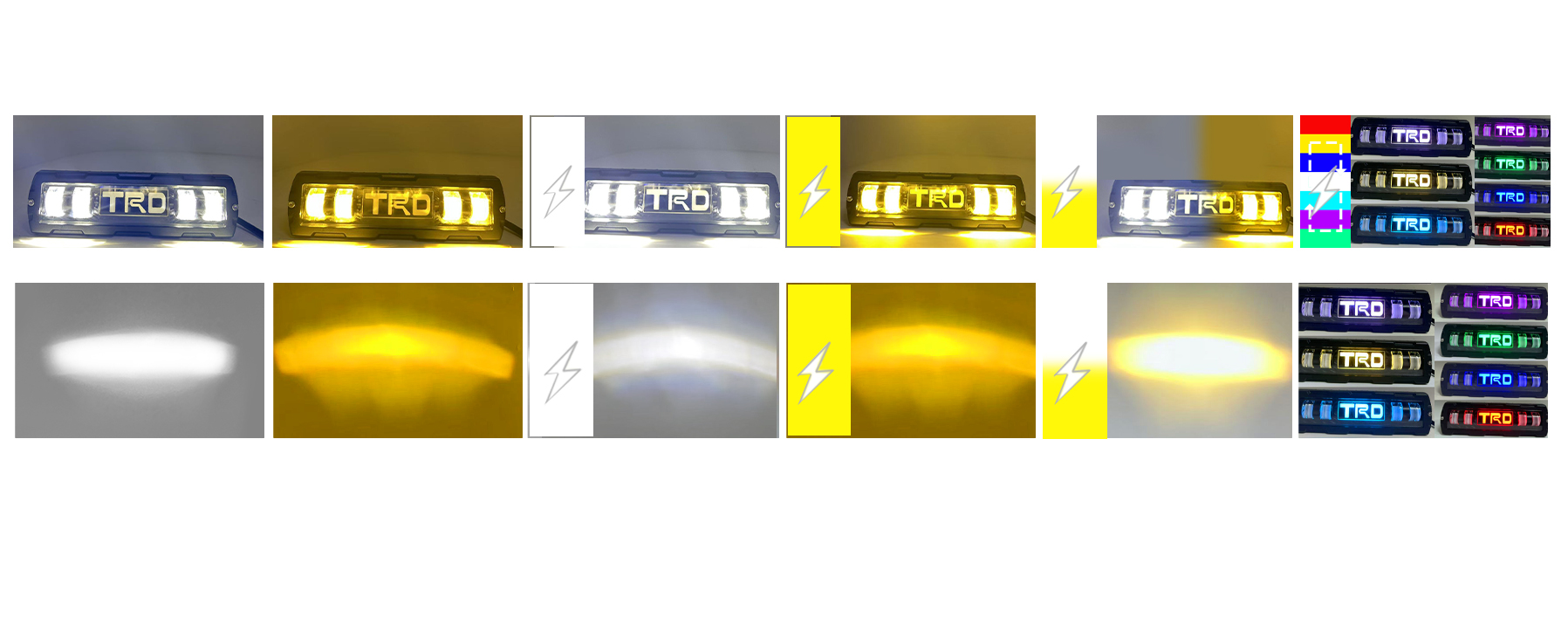 模式:白光常亮/黄光常亮/白光爆闪/黄光爆闪/白+黄爆闪/七彩常亮+流水